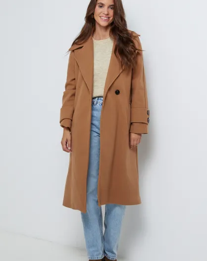 Cappotto a collo alto di media lunghezza Melodie Choco