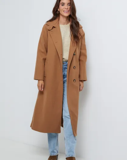 Cappotto a collo alto di media lunghezza Melodie Choco