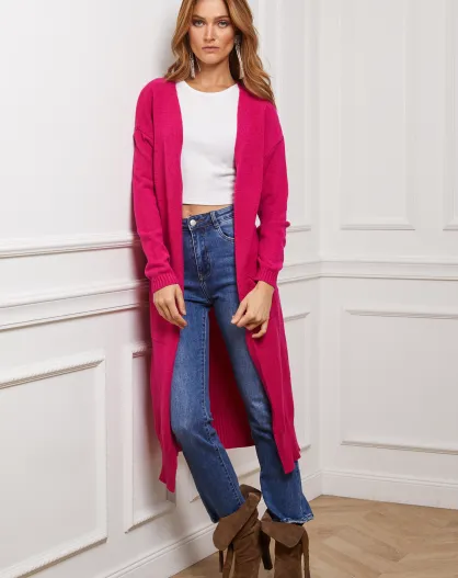 Gilet abbottonato con scollo tondo a blocchi di colore rosa