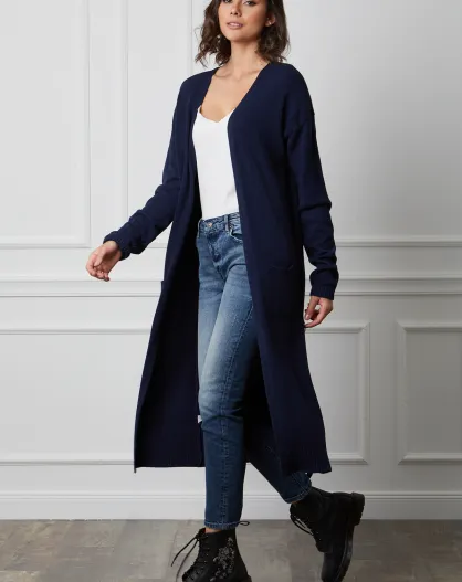 Cardigan Glada in cotone e lana a righe notturne/ecru
