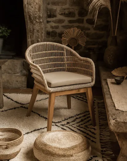 Set di 2 sedie Maelie in teak massello e corda beige