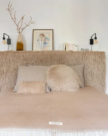 Copriletto in lana beige 250x250 cm