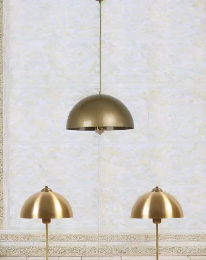Set lampadario e lampada da tavolo in oro 2546108 - 70 cm
