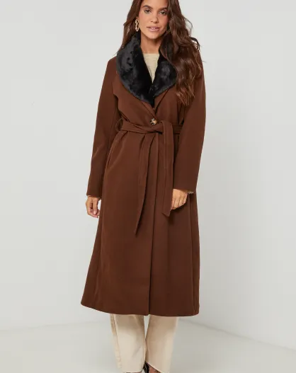 Cappotto a collo alto di media lunghezza Melodie Choco