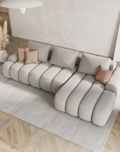 Divano angolare destro Luc Velours 5 posti beige - 341x166x70 cm