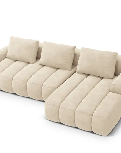 Divano angolare destro Luc Velours 5 posti beige - 341x166x70 cm