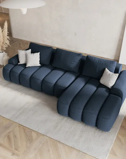 Divano angolare sinistro trasformabile Kimi A con baule Kimi 3 posti blu - 275x142x84 cm