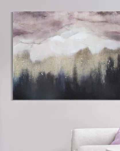 Pittura su tela multicolore con fiori e foglie - 100x3,7x80 cm