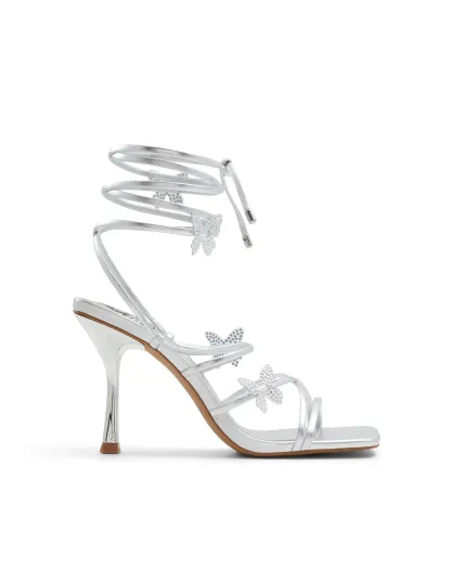 Sandali con tacco Diana in argento chiaro