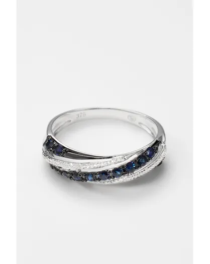 Anello Sapphire Trio con diamanti 0,095 ct Zaffiri 0,56 ct in oro bianco