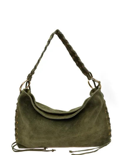 Borsa Laurie in pelle verde militare - 27,5x20 cm