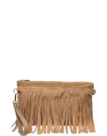Pochette in pelle di velluto Cloé Cognac - 18,5x30 cm