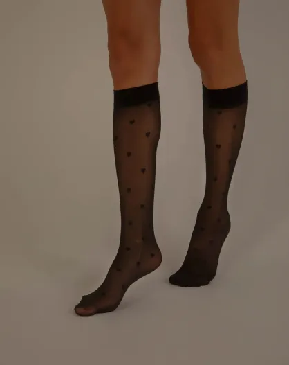 Calze al ginocchio nere a cuore