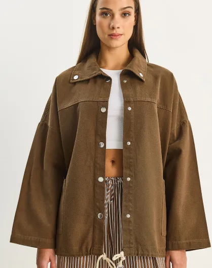 Giacca in denim oversize marrone con dettagli sulle tasche