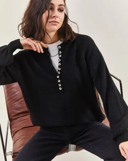 Maglione in maglia a collo alto con bottoni nero opaco