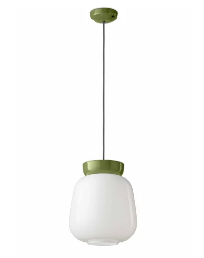 Sospensione Corcovado foglia verde e bianco latte 34x29 cm