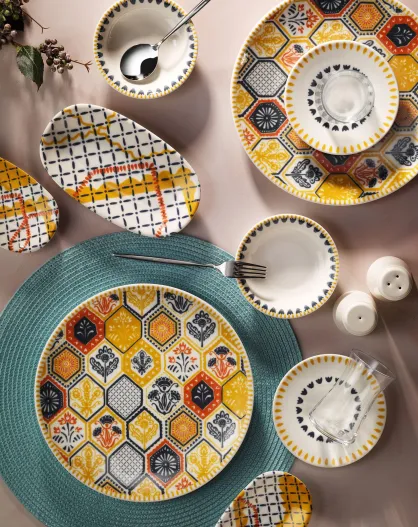 Servizio da tavola verde/giallo/marrone - 24 pezzi
