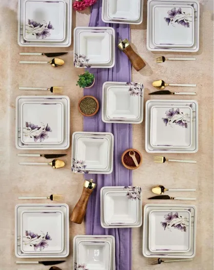 Servizio da tavola bianco/viola - 24 pezzi