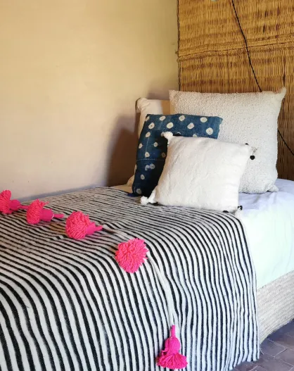 Plaid berbero con pompon rosa fucsia - 250x150cm