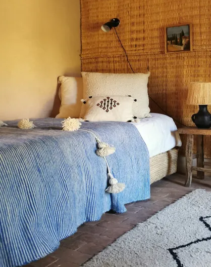 Plaid berbero con pompon bicolore - 250x150cm