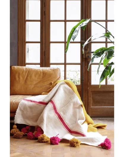Plaid berbero con pompon rosa fucsia - 250x150cm