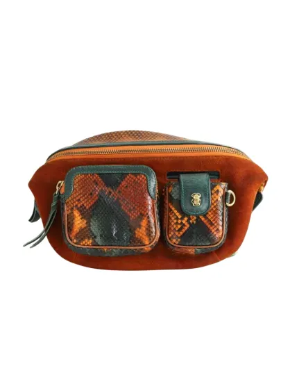 Borsa a tracolla Seren cognac in pelle di agnello e pitone - 25x11x16,5 cm