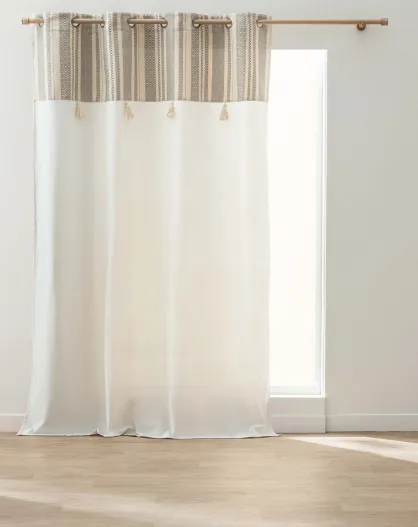 Tenda Solando con occhielli con pompon bianco/beige - 140x240 cm