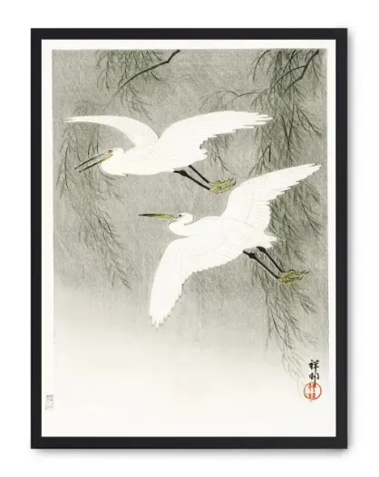 Dipinto raffigurante il volo dell'airone bianco - 50x70 cm