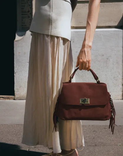 Borsa in pelle bordeaux Neva Velvet - 28x22x10 cm