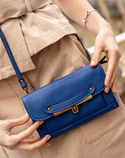 Borsa a tracolla Simone in pelle blu - 20x13 cm