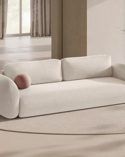 Divano convertibile Kora a 3 posti beige chiaro con contenitore - 262x105x88 cm