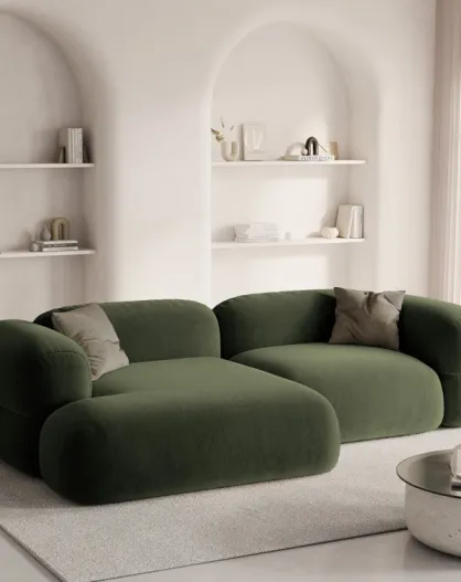 Divano angolare destro in velluto modulare verde a 3 posti Lony - 250x147x68 cm