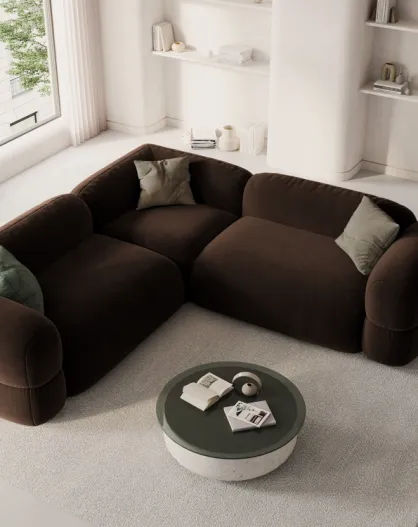Divano angolare modulare in velluto simmetrico a 5 posti Lony Chocolate - 250x250x68 cm