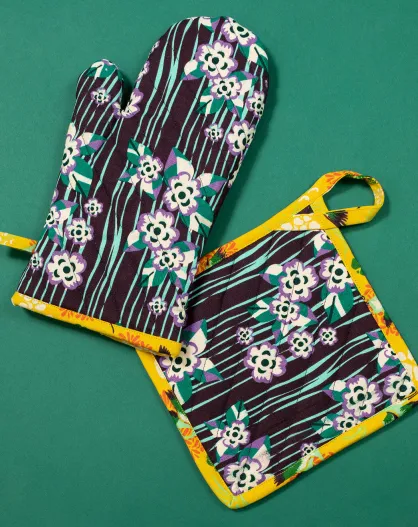 Guanto e presina in cotone biologico Biba bordeaux/giallo - 23x13 cm