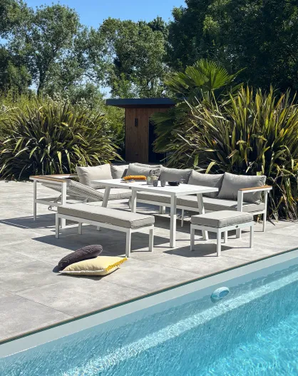 Set da pranzo da giardino Abella 8 posti bianco/grigio
