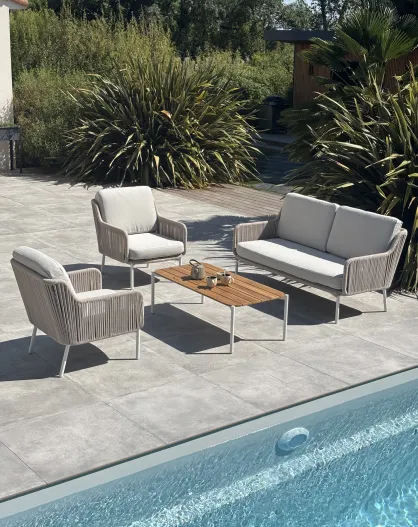 Mobili da giardino bassi Renzo in acciaio e acacia greige