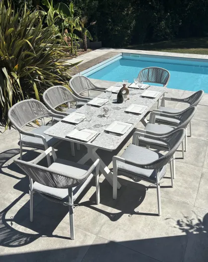 Set da pranzo da giardino Abella 8 posti bianco/grigio