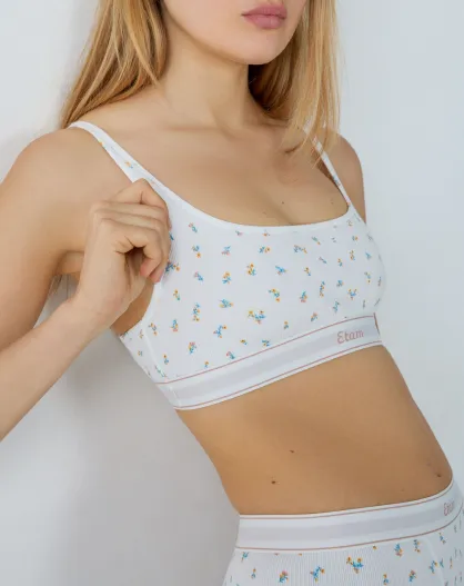 Comodo reggiseno senza ferretto con motivo floreale bianco
