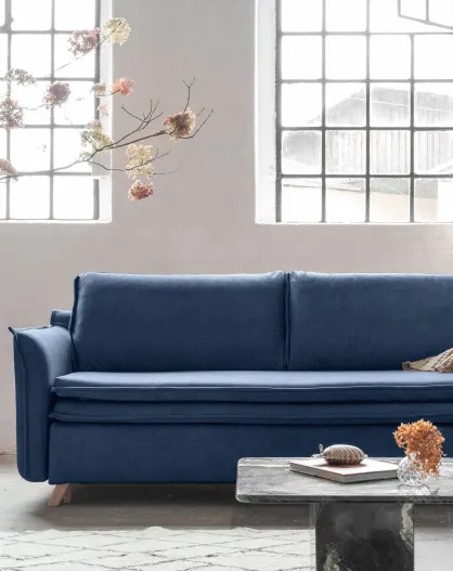 Charming Divano convertibile Charlie Slim a 3 posti blu marino - 225x90x85 cm