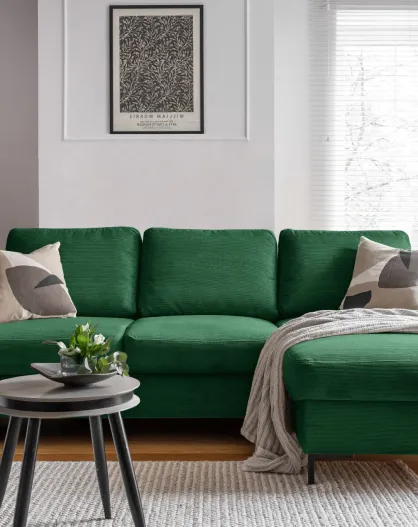 L Divano angolare convertibile; angolo destro Lazy Lukka Verde bottiglia - 247x191x85 cm