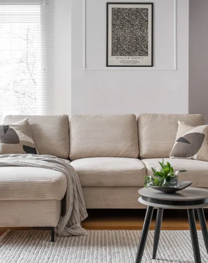 Divano angolare fisso a L, sinistro Cloud Beige - 260x197x76 cm
