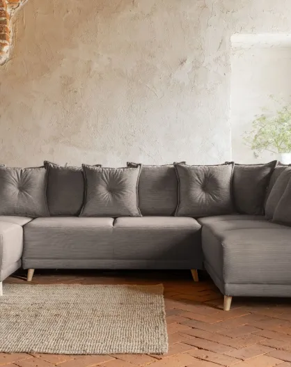 Divano angolare a U ad angolo retto convertibile Lazy Lukka Latte - 320x191x85 cm