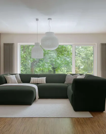 Divano angolare destro Gatsby Fixed U Verde Scuro- 341x233x87 cm