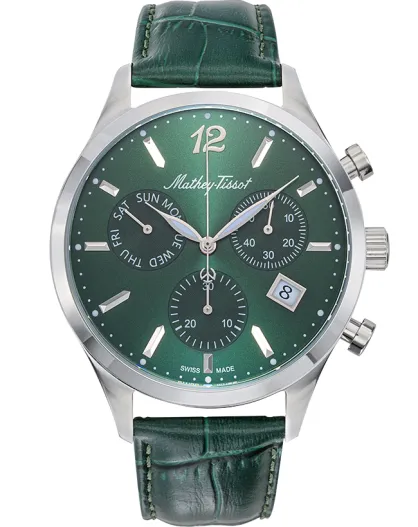 Orologio da uomo Swiss Made Automatic Peseux P224H6 in pelle verde