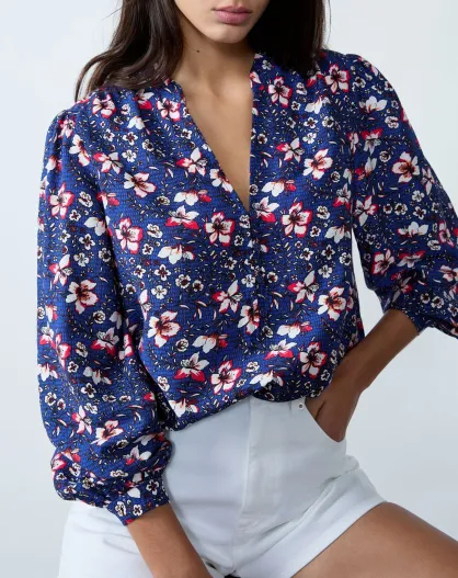 Blusa Vilma blu verde stampata