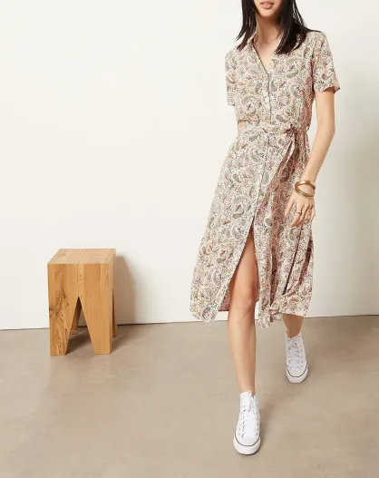 Abito Cesar stampato con fondo corallo