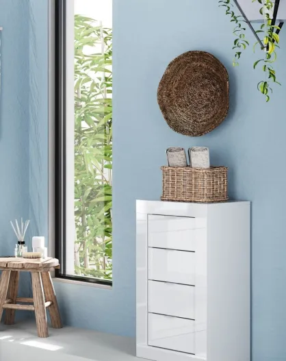 Bari - Mobile da bagno 4 cassetti laccato lucido bianco - 42x78x35 cm