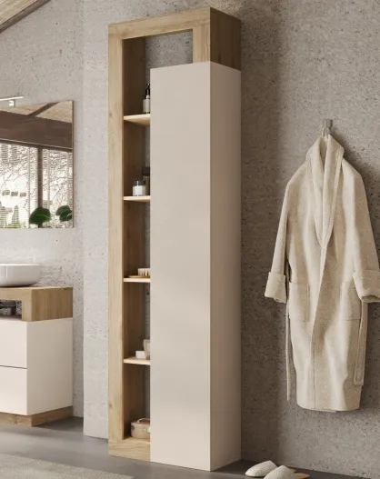 Ancona - Colonna portaoggetti da bagno 1 anta + 4 ripiani facciata laccata lucida in rovere kadiz cachemire - 50x189x33 cm