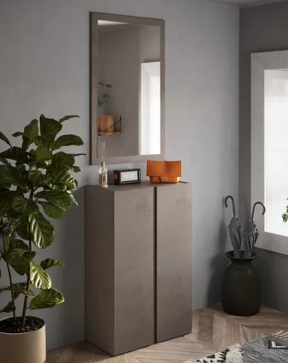 Ferrara - Armadio a 2 ante con specchio e 10 ripiani regolabili in bronzo e rovere mercurio - 70x185x35 cm