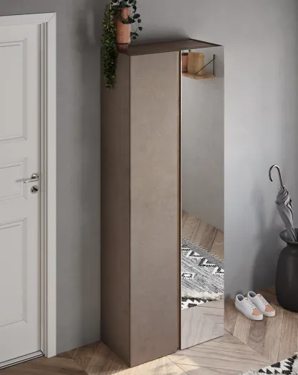 Ferrara - Armadio a 2 ante con specchio e 10 ripiani regolabili in bronzo e rovere mercurio - 70x185x35 cm